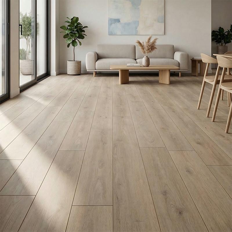 El revestimiento UV de la superficie es liso y denso. Se puede limpiar fácilmente con un trapeador seco para el cuidado diario y cualquier grieta en la textura se puede cepillar suavemente con un cepillo suave. No tiende a atrapar suciedad ni mugre.