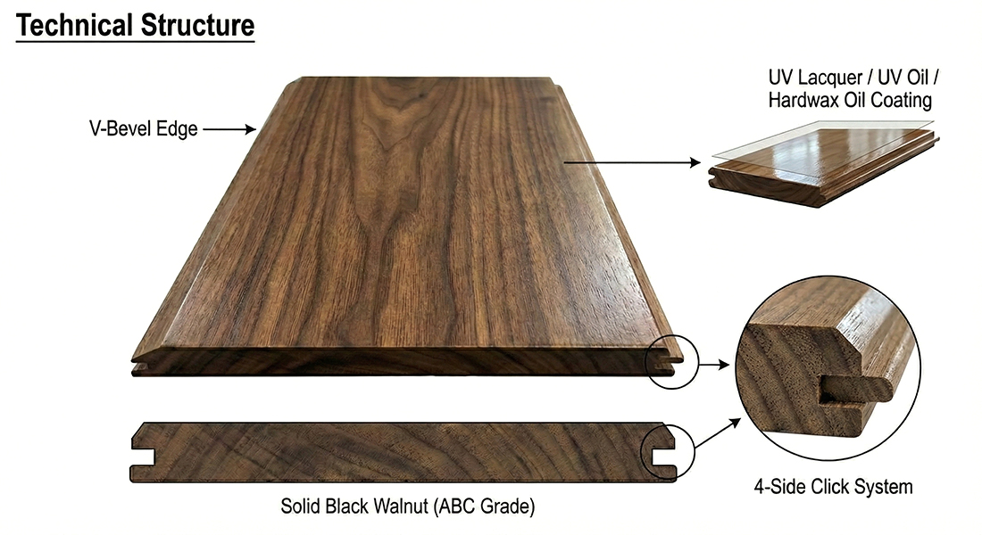 | Productos clave utilizados | Pisos de madera de nogal de ingeniería |